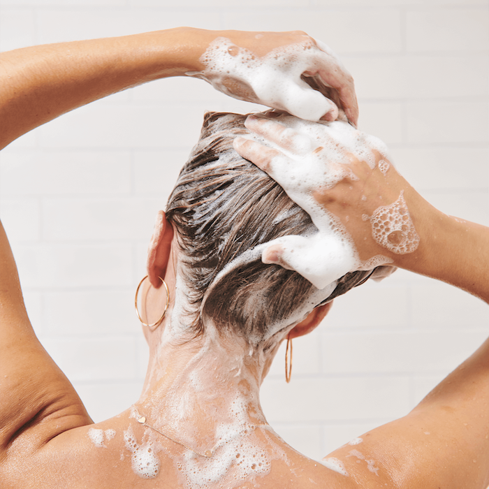 Étape 2 : Mélangez le shampooing avec de l'eau sous la douche jusqu'à ce qu'une mousse abondante se forme.