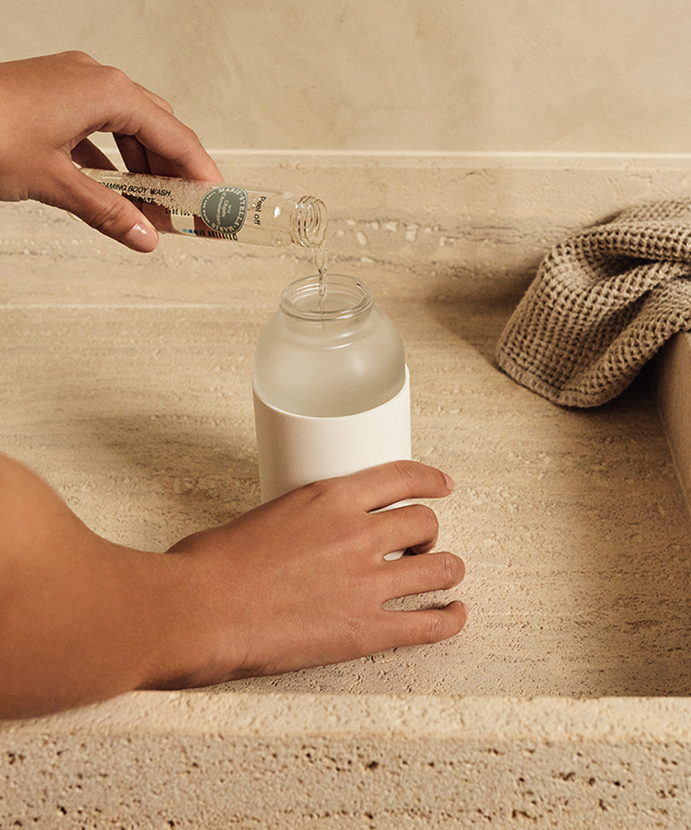 Ontdek de nieuwe Foaming Body Wash met concentrates. Creëer een magisch rijk schuimende douche-ervaring door de duurzame design fles te vullen met kraanwater en onze concentrate, die verkrijgbaar is in vier van onze iconische geuren. De 100% vegan en natuurlijke geconcentreerde formule is verrijkt met aloë vera en huideigen biolipiden, voor een zachte en gehydrateerde huid.